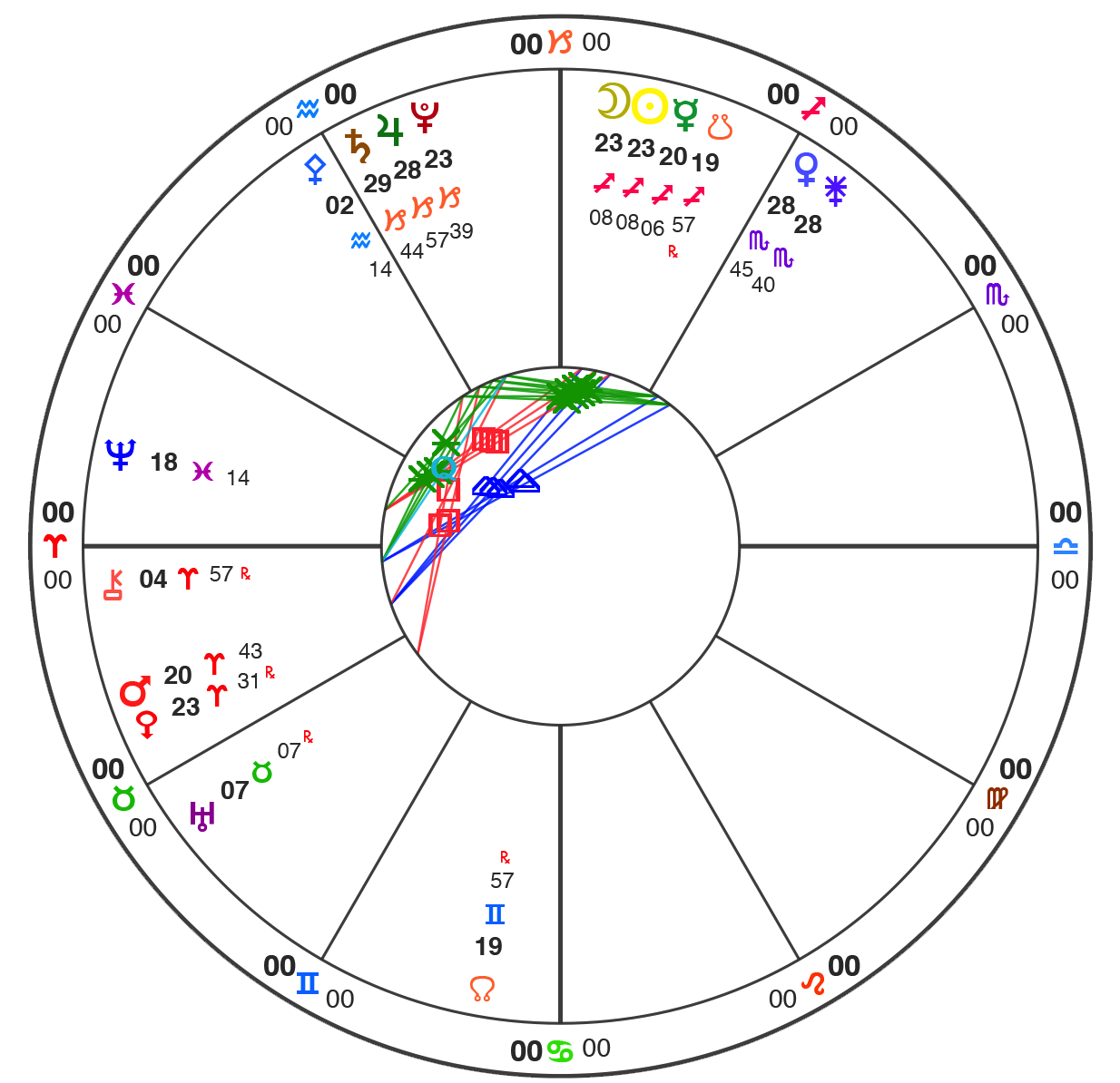 All charts here are using Natural House system: i.e. the Ascendant is always at 0˚ of Aries.
