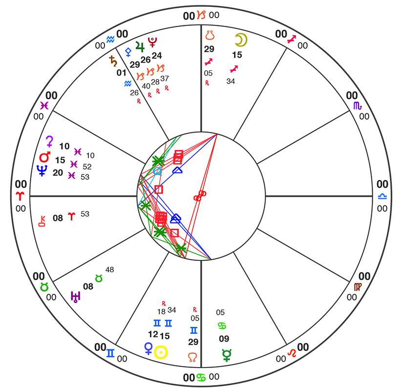 All charts here are using Natural House system: i.e. the Ascendant is always at 0˚ of Aries.