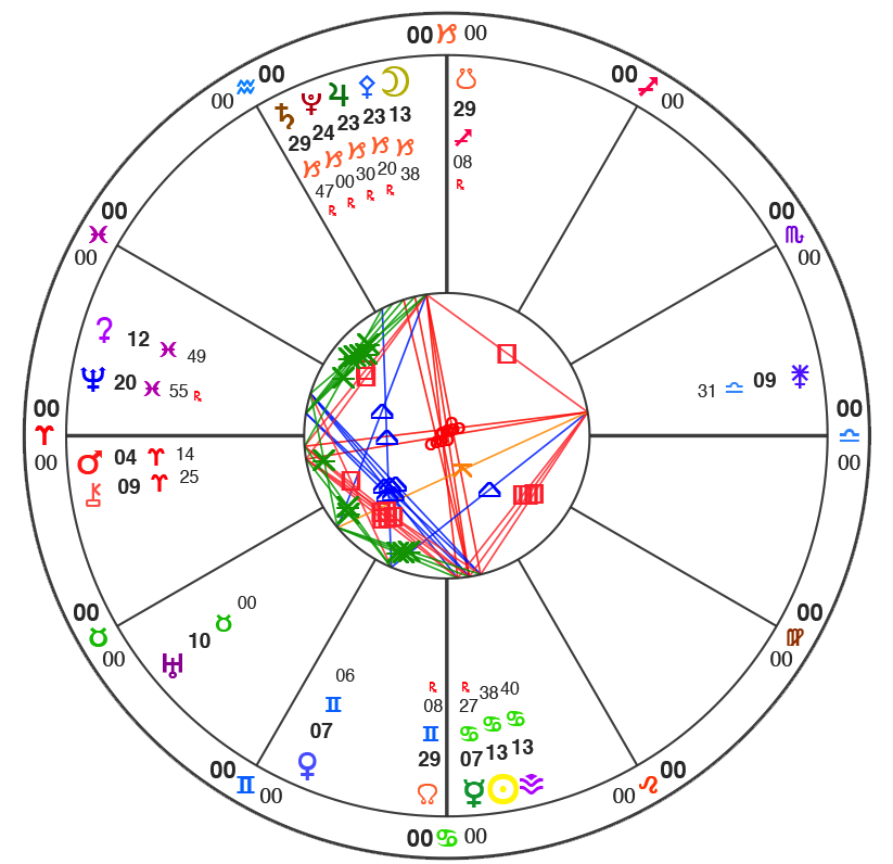 All charts here are using Natural House system: i.e. the Ascendant is always at 0˚ of Aries.