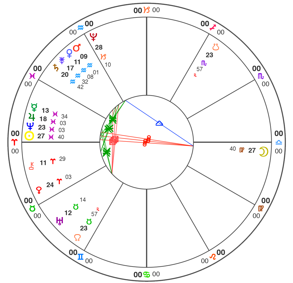 All charts here are using Natural House system: i.e. the Ascendant is always at 0˚ of Aries.