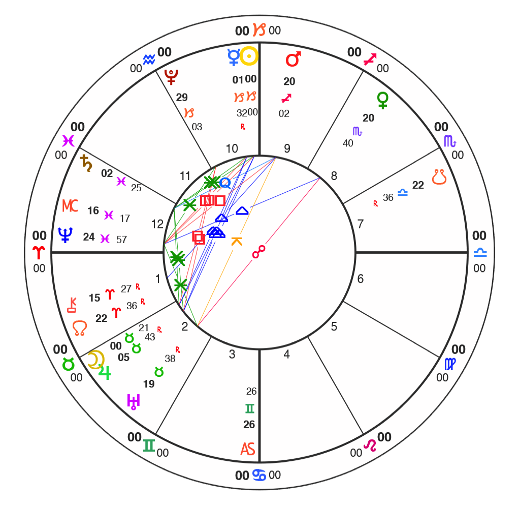 All charts here are using Natural House system: i.e. the Ascendant is always at 0˚ of Aries.