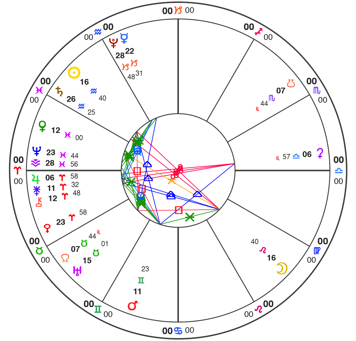 All charts here are using Natural House system: i.e. the Ascendant is always at 0˚ of Aries.