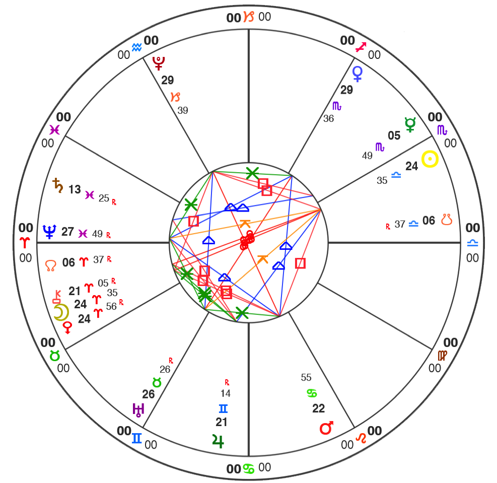 All charts here are using Natural House system: i.e. the Ascendant is always at 0˚ of Aries.