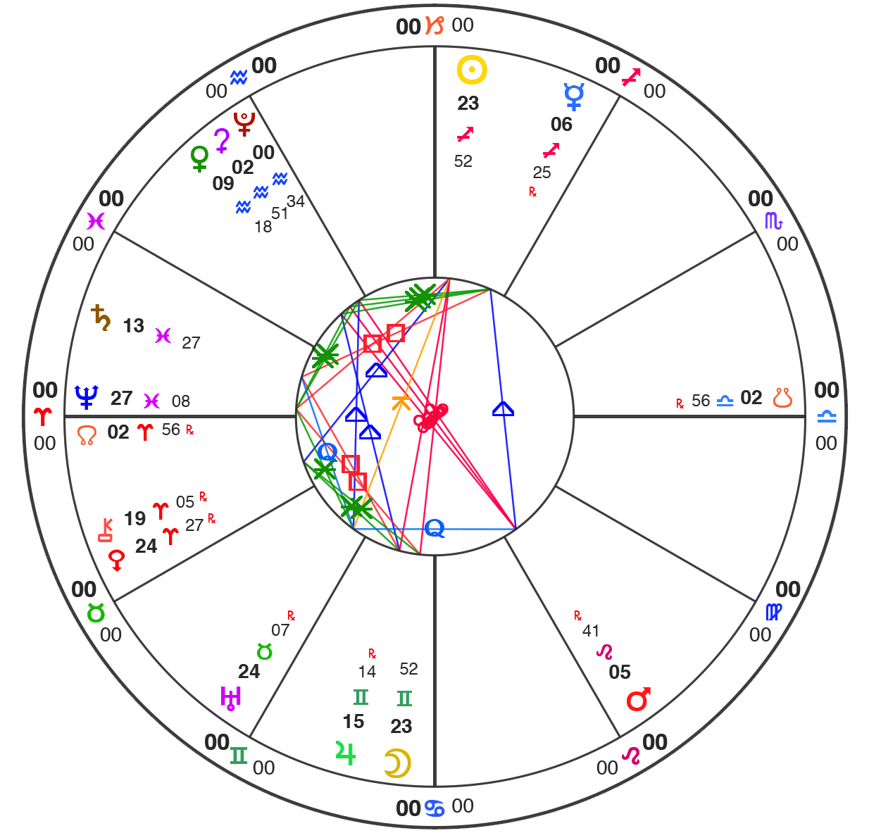 All charts here are using Natural House system: i.e. the Ascendant is always at 0˚ of Aries.