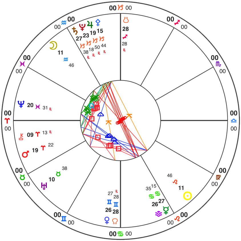 All charts here are using Natural House system: i.e. the Ascendant is always at 0˚ of Aries.