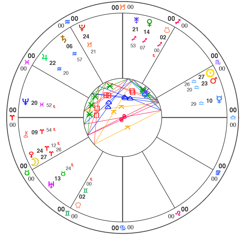 All charts here are using Natural House system: i.e. the Ascendant is always at 0˚ of Aries.