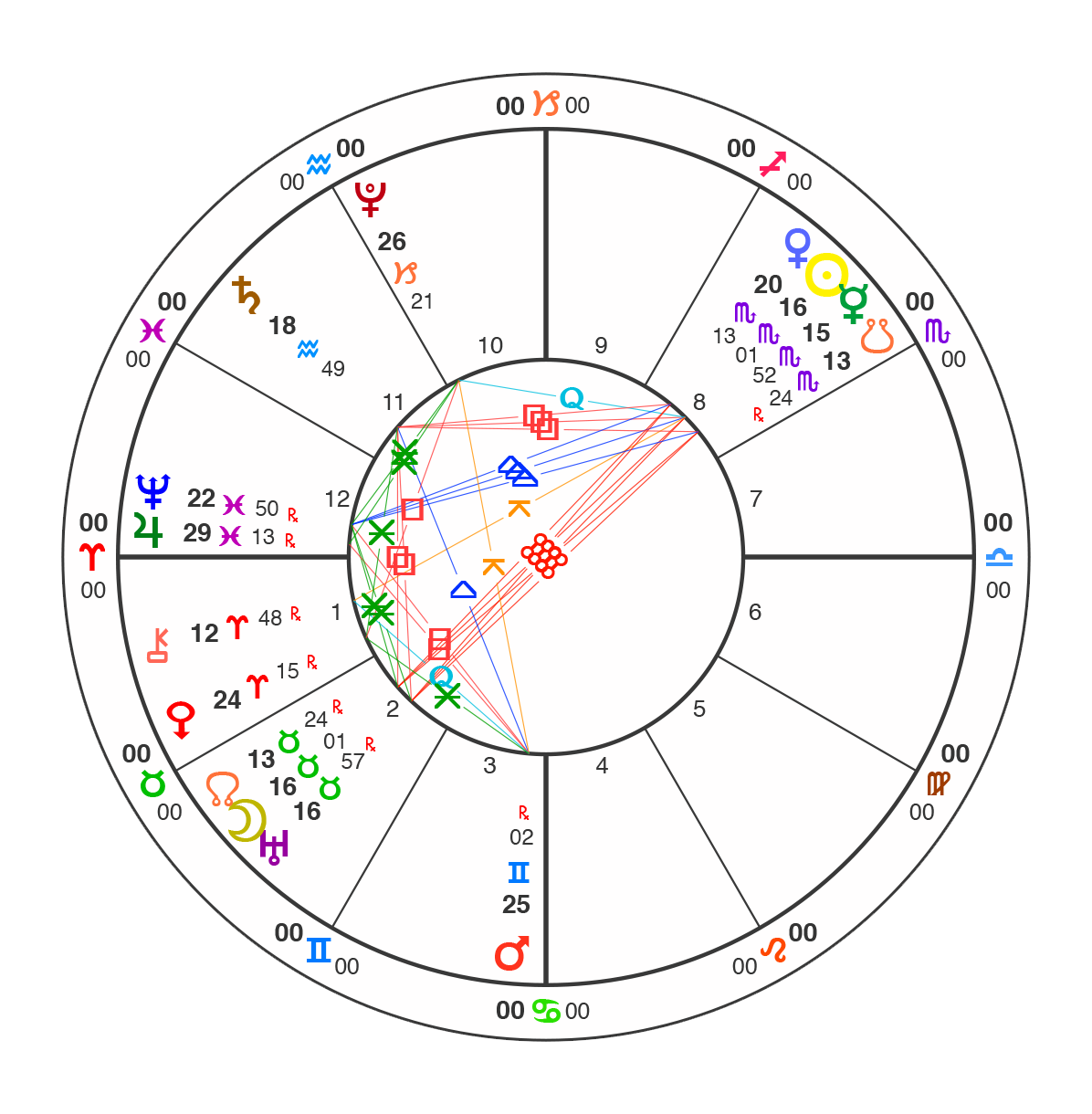 All charts here are using Natural House system: i.e. the Ascendant is always at 0˚ of Aries.