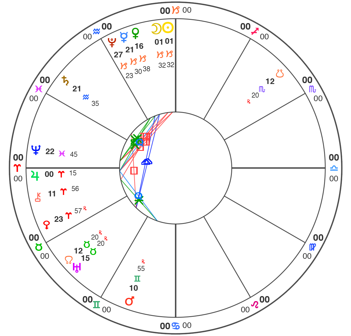 All charts here are using Natural House system: i.e. the Ascendant is always at 0˚ of Aries.