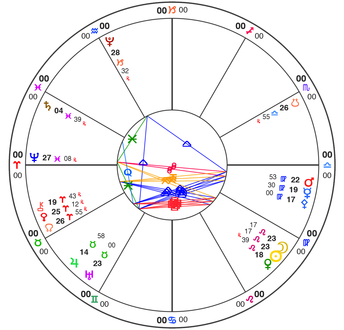 All charts here are using Natural House system: i.e. the Ascendant is always at 0˚ of Aries.