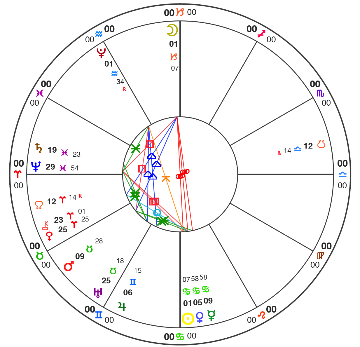 All charts here are using Natural House system: i.e. the Ascendant is always at 0˚ of Aries.