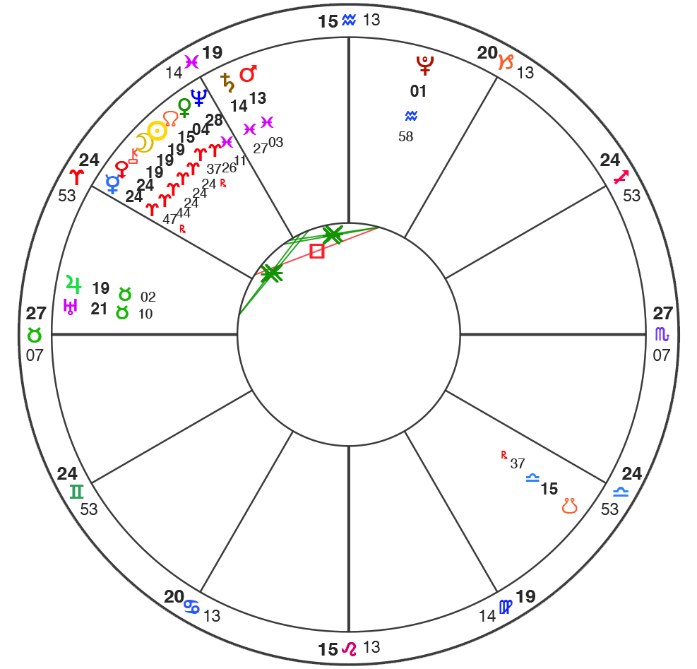 All charts here are using Natural House system: i.e. the Ascendant is always at 0˚ of Aries.