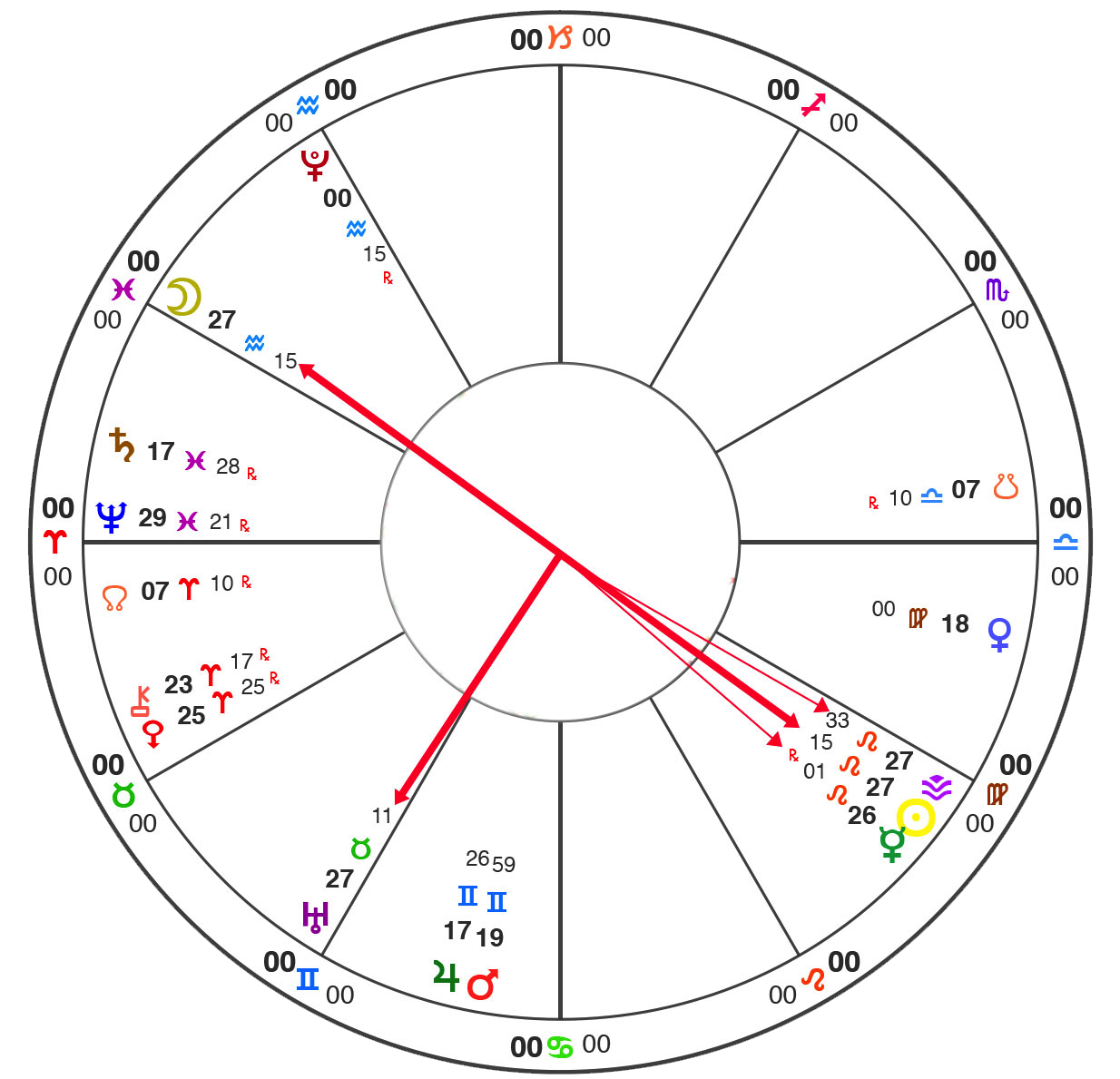 And speaking of 27˚Aquarius, looking at the chart of Kamala Harris, her natal Saturn occupies 28˚ of that sign, in a lovely trine (harmonious 120˚ angle) to her Sun at 27˚ of Libra and conjunct the Moon of the US. We are watching destiny through the angles and degrees of various planetary signatures. Her Saturn can be a guiding and steering force that puts her in alignment with the voice of the People of the US.